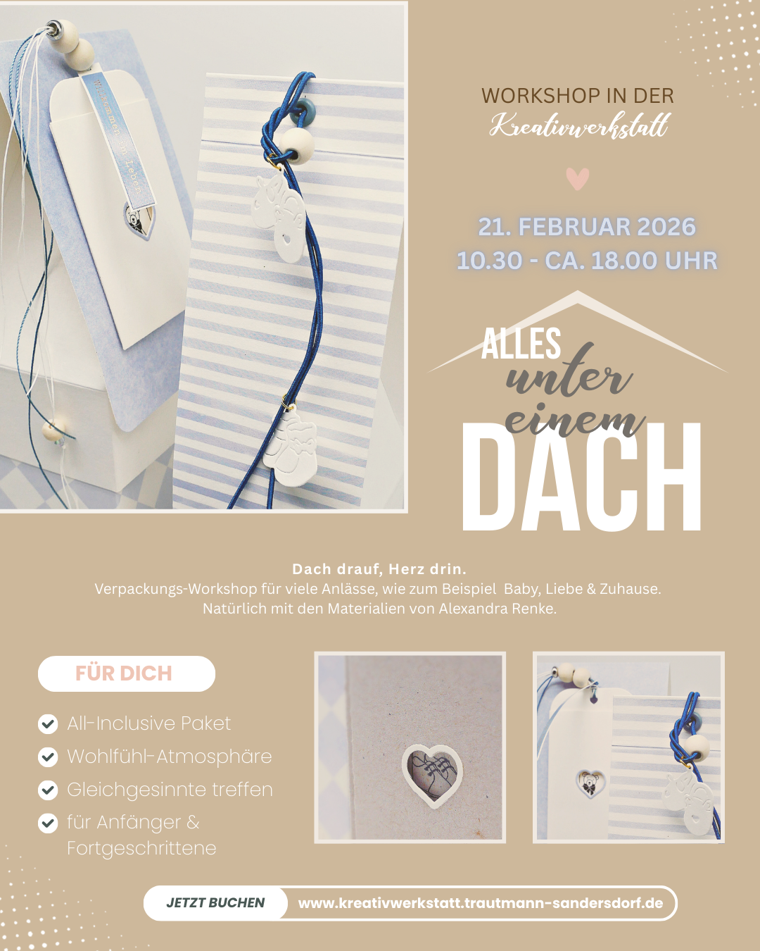 Du kannst Fragen stellen, in Ruhe schauen, ob meine kreativen Angebote zu dir passen, und einfach ein bisschen Werkstattflüsterei erleben.