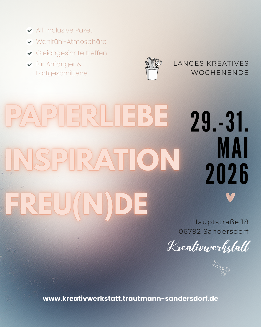 Am Samstag, den 28. Februar 2026 öffnet die Kreativwerkstatt in Sandersdorf ihre Türen.